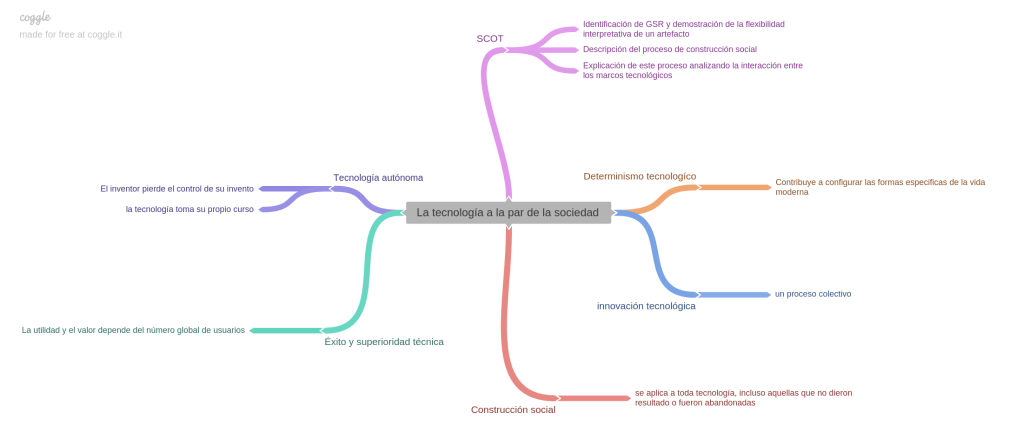 Gracias al modelo SCOT, podemos evidenciar la participación que tenemos en el desarrollo tecnológico, identificar el GSR (grupo social relevante) y demostración de la flexibilidad interpretativa de una artefacto. Se tiene un determinismo tecnológico, un cambio tecnológico que se produce, contribuye a configurar formas especificas de la vida moderna. Una unión entre la tecnología y sociedad que es multidireccional, una construcción social que ayuda a la innvocacion. La autonomía de la tecnología que sigue una lógica interna del desarrollo, la tecnología no es autónoma. Tercero, la construcción social de la tecnología, esta influida por procesos sociales a las características del diseño, criterio de funcionamiento y eficacia.